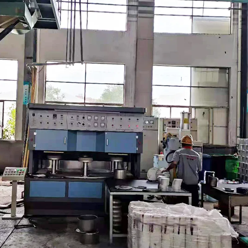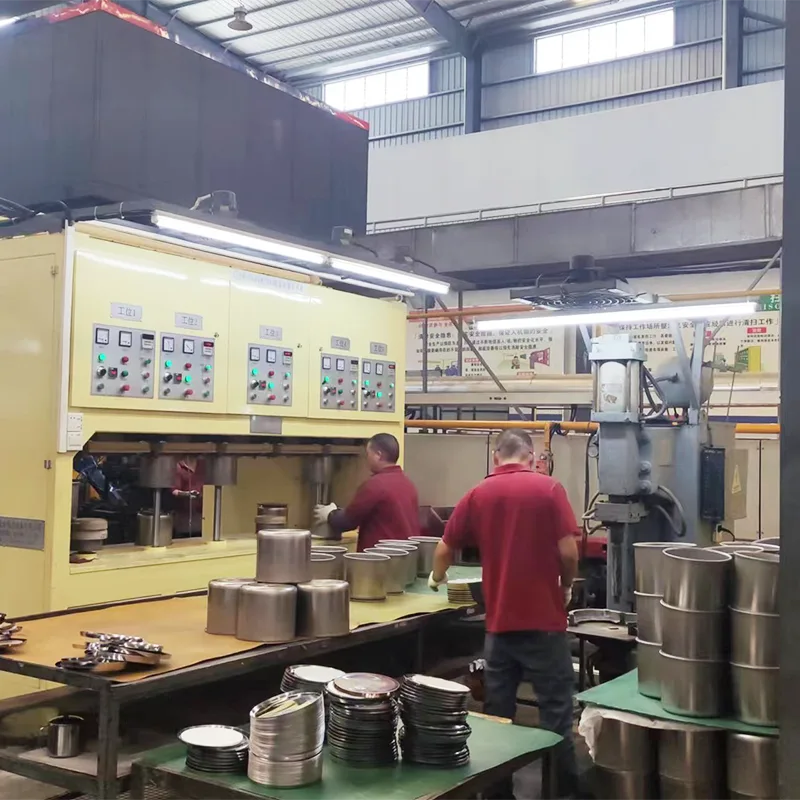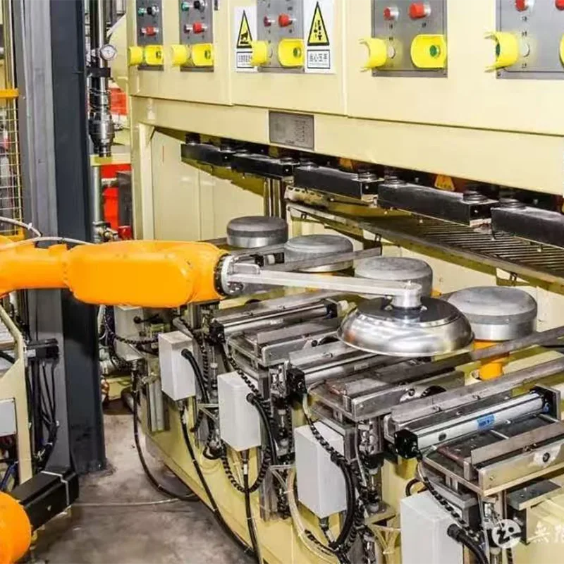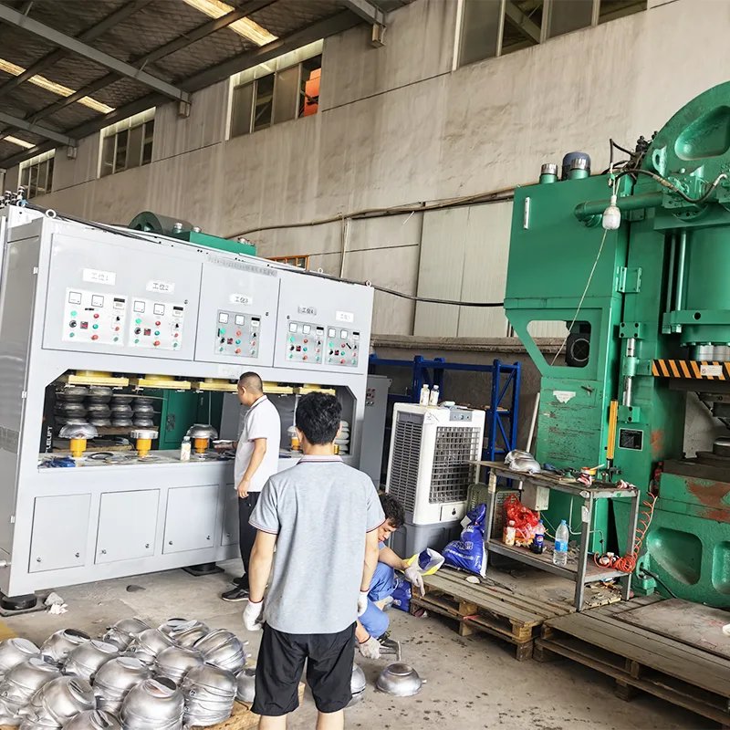 Chantier d'une entreprise renommée fabriquant des casseroles en acier inoxydable à l'aide de machines chauffantes rotatives