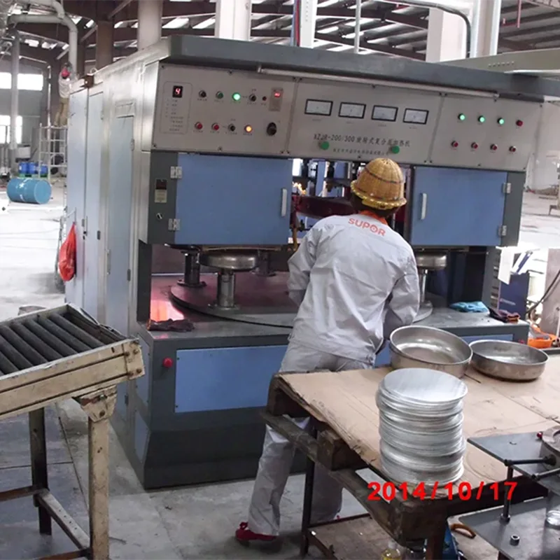 Site de travail de la machine de chauffage de fond de pot en aluminium