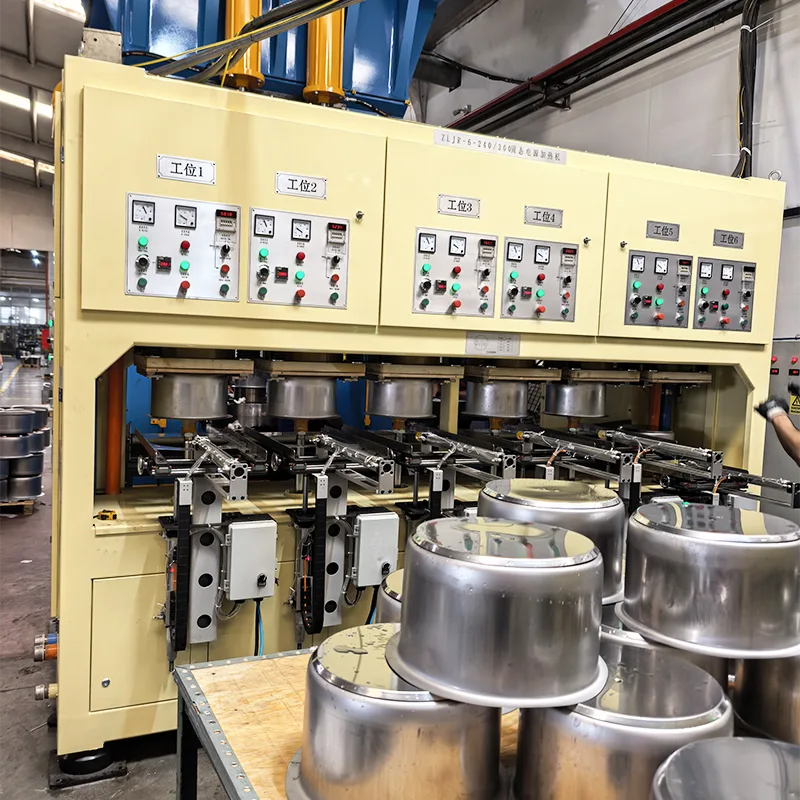 Machine de chauffage en ligne à cinq stations pour la production automatisée de revêtement de fond de casserole en acier inoxydable