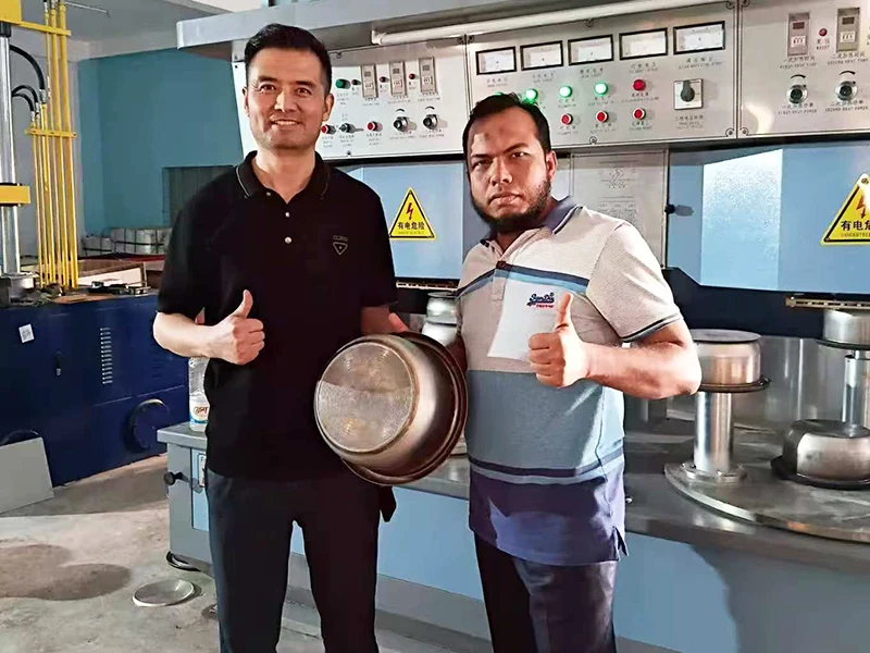 Clients égyptiens sur le site de fabrication de casseroles en acier inoxydable